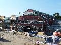 | Michael Mettler: | Die Großbaustelle besteht noch immer mehr in Aufräum- als in Aufbauarbeit, wie ich heute feststellen durfte. Angesichts der Schuttmengen, die beseitigt werden müssen, eigentlich auch kein Wunder. Obwohl bis auf den Elefantenhaus-Rest inzwischen alle gewohnten Strukturen beseitigt sind, türmen sich an verschiedenen Stelle noch Trümmerberge von der Größe einer Steinbockanlage... Im bisherigen, an andere Stelle versetzten Yukon-Bay-Infocontainer findet sich nun neben dem Modell des Zooteils usw. auch ein Eisstand, davor wurde ein Platz mit ein paar rustikalen Sitzgelegenheiten angelegt, und an dessen gegenüber liegendem Ende steht ein riesiger amerikanischer Wohnwagen-Trailer, der als Snackbar fungiert - daneben das vorher neben der alten Show-Arena platzierte Kindertrampolin. Zum Dschungelpalast hin wurde der Weg so verschwenkt, dass der Übergang von "Alaska" nach "Indien" optisch etwas sanfter verläuft und man nicht schon vom Yukon Trail aus die Elefantenstatuen sieht - und das war's auch schon mit dem aktuellen Zwischenstand. Auf einem der Baustellenschilder ist zu meinem Erstaunen wieder von Eisfüchsen die Rede. Lassen wir uns mal überraschen, wie sich während der zweijährigen Bauzeit die Planungen noch ändern werden! (06.04.2008, 16:27) | ||