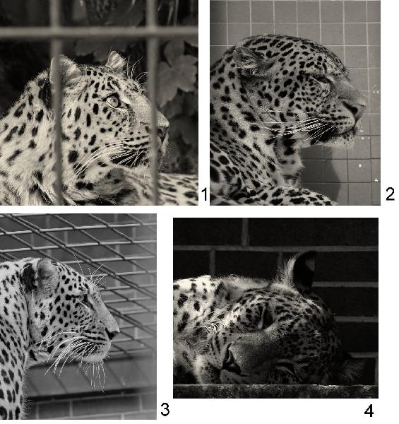| Tim Sagorski: | Hmmm... Das macht ja mal Spaß ! Also, das alle vier Tiere auf den Fotos Leoparden sind, würde ich auch mal vermuten ! 1. Amur-Leopard (keine Ahnung wo) 2. Java-Leopard 3. Perser 4. Außenseiter-Tipp : Ebenfalls Amur-Leopard und zwar der Dortmunder Kater "Mo Timur" im momentanen Jaguar-Exil (da gibts nämlich auch Klinker) (16.08.2011, 20:05) | ||