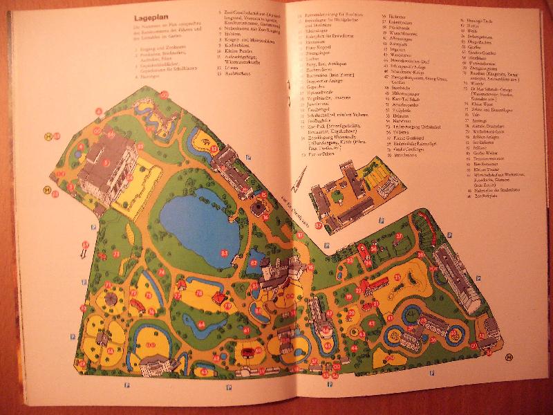 sehr schön,die auch das Tierparkgelände mit den vielen wasseradern und sogar die Tierhäuser und Ställe sehr schön grafisch darstellen. Und übrigens auch eine Führungslinie haben. Auch die alten Pläne von hellabrunn, aus den 60 iger und 70 iger Jahren,waren toll, aber viel zu aufwendig in der Handhabung, ähnlich wie eine Landkarte..Frankfurt hatte im Laufe der Jahre sehr unterschiedliche Pläne, der aktuelel, sehr stilisierte Plan gefällt mir nicht so gut, auch wenn ers ehr übersichtlich ist, persönlich fand ich den Frankfurter Plan, der zwischen 1987 und 1999 verwendet wurde, sehr schön. Die Pläne des Zoo berlin, die früher auf der Rückumschlagsseite des Zooführers abgedruckt waren, fand ich sehr praktisch, man brauchte den Zooführer nur umdrehen, um sich zu orientieren, ohne aufwändig den Plan ausfalten oder aufklappen zu müßen, wie es jetzt der fall ist. Durch die Bennung der Anlagen udn Tierarten direkt im Plan, braucht man auch nicht umständlcih die Nummer mit der Legende zu vergleichen oder die entsprechende Nummer im Plan zu suchen. Der neue Plan gefällt mir allerdings nicht mehr, er wirkt irgendwie unübersichtlich, zumal die Tiersilhouetten viel zu groß sind.