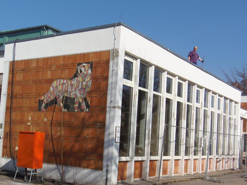 | WolfDrei: | Bautätigkeit: - Präriehunde: nichts gesehen - Cafeteriaspielplatz_ es werden Riesenskulpturen (tierische?) aus Hartschaumplaste zusammengesetzt, auch die `` Spielelemente" wachsen. Die Cafeteria selbst soll nach Umbau im Juli einsatzbereit sein - hier ein Eindruck vom entstehenden Haupteingangsumbau (14.06.2016, 21:38) | ||