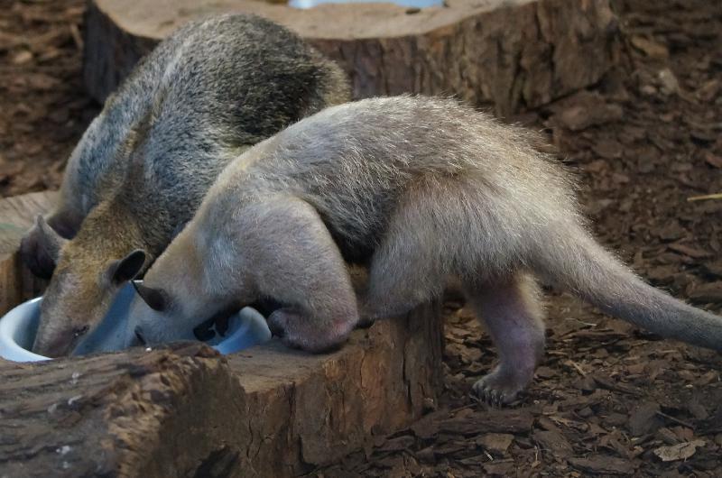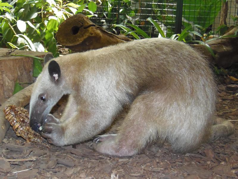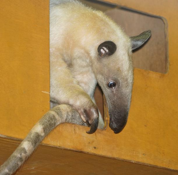 | WolfDrei: | Dickhäuterhaus: der neue Tamandua aus Chester - etwas stärker gefärbt als die beiden anderen. Die Kaiserschnurrbärte sind in das Affenhaus gezogen, in ihrer Anlage sind jetzt die Goldhandtamarins, deren Anlage nun `` entmaust`` wird. (14.06.2016, 21:33) | ||