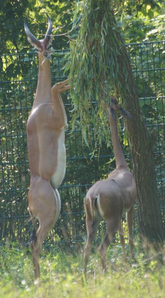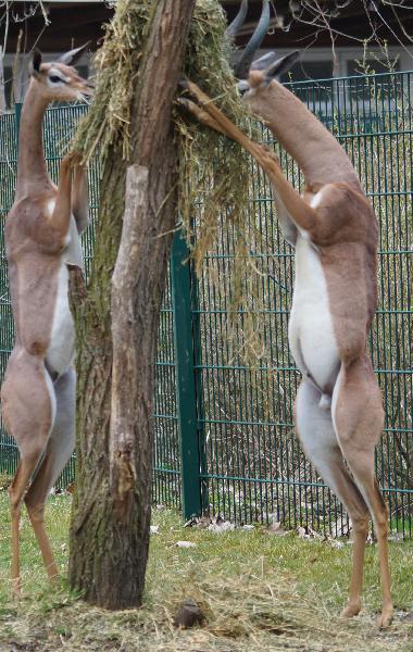 | WolfDrei: | @P. Marburger: `` eigentlich"" sind es im TP 1 , 1. Eigentlich, weil ich während der letzten 2 Besuche (innerhalb von ca 6 Tagen) jeweils ein Tier auf der Anlage sah. So gegen 10 - 11 hängt gewöhnlich rechts vorn das Gezweig in der Höhe. Zoo Berlin: im Antilopenhaus gibt es ein generelles Schild, so man rechts im Innenraum nachschaut. Komischerweise habe ich es dort nur im Winter gesehen, jetzt nicht - auch nicht auf einer Freianlage. Sonntag werde ich mir das Vogelhaus anschauen (bin momentan Strohwitwer), schaue dann auch dort nochmals nach. Also ``Berlin`` hat 2 , 1 Gerenuks. (01.07.2016, 20:08) | ||