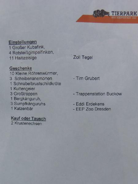 | Klaus Schüling: | Die Gemeinschaft der Förderer von Tierpark Berlin und Zoo Berlin lädt ein: Dienstag, 13. Mai 2008 18.00 Uhr, Treffpunkt Cafeteria – Tierpark Berlin Führung: Tiere des Alfred-Brehm-Hauses Claus Pohle Sonntag, 1. Juni 2008 10.00 Uhr – Tierpark Berlin, Eingang Bärenschaufenster Spezialführung „Affen im Tierpark“ (06.05.2008, 15:40) |