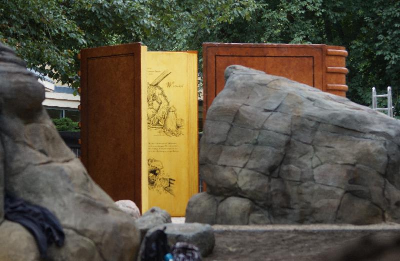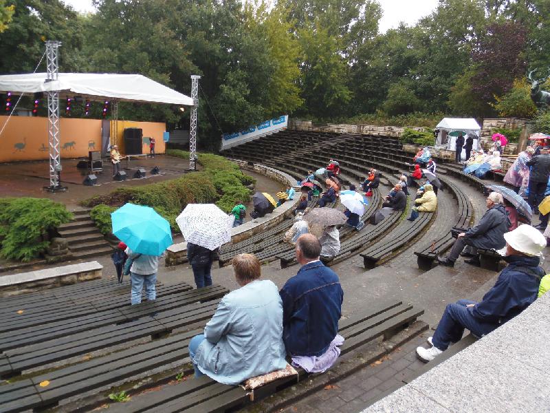 | WolfDrei: | Je 15 Millionen für TP und Zoo - nicht schlecht! Und es wimmelte vor entsprechenden Adjektiven: naturnah, einzigartig, zukunftsorientiert usw. 320 000 Euro haben Eingang und Präriehund-Ursonanlage gekostet. Der Eingang ist schon eine Visitenkarte. Zeitungsüberschrift: Tor der Zukunft. Und vorher : Eingang mit dem Flair einer Tankstelle. Heute wenigstens tankten insbesondere viele Kinder die Luft - ich dachte, die Ferien würden erst in 2 Tagen beginnen? Und weiterhin: die Cafeteria hatte schon geöffnet! Nicht erst am Donnerstag wie geplant! Die eigentlichen Veränderungen betreffen wohl speziell die Kücheneinrichtungen und das Angebot, die Speiseräume sind wie gehabt ``bemöbelt``. Warum allerdings die Aquarien mit Rahmen und darin befindlichen historischen Aufnahmen vom TP verschlossen wurden (Ausnahme die beiden Korallenbecken) ist mir nicht erklärlich, zumal die Zylinderaquarien zunächst nur ``an sich`` dort stehen und irgendwie nicht so gewaltig wie in dem schönen Prospekt ausschauen. Kann ja mit der Ausstattung noch werden (Für Aquarienhalter ist übrigens ein allseitig einsichtbares Becken ohne große Ausstattung ein Graus, pardon, für die Fische - es sei denn, es sei noch größer). Und es wurde weiter ``geklotzt``. Am Spielplatz an der Cafeteria (oberer Abschnitt) wurden eigentlich nur noch Restarbeiten wie Nivellierungen und Erdangleichungen gemacht. Rätselhaft waren mir immer , soweit einsichtbar, sonderbare Holzkonstruktionen: es sind zwei aufgeschlagene gegenüberstehende große Bücher - und man kann die ca 1 x2 m großen Seiten mit Geschichten umblättern. Die Märchenfiguren im Gelände und das Ambiente dazu regen durchaus die Phantasie an. Und : die Plantsche ist auch fast fertig: eifrig wurde ein blaues `` Bitumengemisch?? aufgetragen (um 15 Uhr fast fertig), der Rand des Beckens ist mit Holzbohlen belegt, in einem nierenförmigen Einschub wurde eine größere Flächen mit Bohlen belegt: bekommt man nach dem ``Bade-Plantschen`` keine schmutzigen Füße beim Herauskommen. Die künftige Vogelschauarena heißt nun laut Eingangsschild Kiekemal Waldbühne Tierisches: Tembo ist im Musth (hatte mir vorher Jan Jakobi mitgeteilt). Im Variwald wurden die Holzklötze weiter in das Innere verschoben, da die direkt am Wege darauf sitzenden Varis geradezu zum Füttern einluden. Die Waschbäranlage ist nach dem Umbau (durch Azubis wurde mir gesagt) vorzeigenswert, doch wurde die Sichtbarkeit der Tiere durch Minderung von Verstecken erreicht: es gibt einen Hängesack in einem offenen Holzhaus - und darin hing ein Tier - das zweite musste sich auf dem Volierenrand niederlassen. Und : die Trappen sind wieder auf der Wiese! Allerdings ist 2 m vom Besuchergang insgesamt ein die gesamte Anlage umlaufendes Drahtnetz von 1,5 m Höhe gespannt - offensichtlich unter Strom stehend. Der Berberhirsch hat eine Geweihhälfte verloren - das kann aber noch nicht der Normalabwurf sein. Und der Sikahirsch sorgt sich um Nachwuchs, der bei den Maralen weiter fehlt. Anbei das `` Märchenbuch`` (19.07.2016, 22:07) | ||