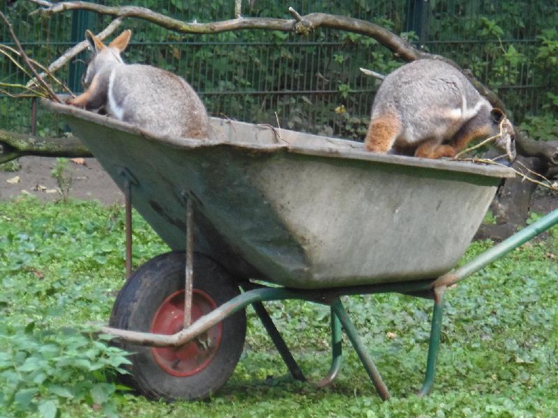 | WolfDrei: | Eine Woche (der Begriff Woche ist relativ zu nehmen) , die es an Geburten `` in sich hatte``! 1 Bucharahirsch, relativ früh 2 Weißlippenh., eine erste Blauschafgeburt mit erstmals Zwillingen, 1 erster Goral, eine dritte Mhorrgazelle. Eine Dauerbesucherin konnte erstmals durch Foto absichern, dass es sich bei den Buntmardern um 2 Jungtiere handelt. Dem Berberhirschjungtier in der Aufzucht geht es gut. Bei den Moschusochsen wird es keinen Nachwuchs geben, da der Bulle 015 abgesperrt war, ähnliches war ja auch der Fall bei den Somalis, den Kiangs, den Goldtakins, den Kulanen - andernorts kein Bedarf!!!! Bautätigkeit: Am Eingang wird gebastelt - ich hoffe nur, dass es kein Reeddach geben wird! An der Präriehundanlage sind die Kunstfelsgerüste erstmals mit Spritzbeton fassfähig gemacht worden, die ``eingebauten `` senkrechten Holzteile werden nach Entfernung die Fugen für die Scheiben darstellen, die unteren Scheibenfassungen werden gerade ``eingeformt`` mit Kunstfels. Am eigentlichen Spielplatz war niemand zu sehen, an der `` Plantsche`` aber wurde im vorderen Drittel der Beton aufgeschnitten, Rohrleitungen sind zu sehen, auch seltsame ``Töpfe?? - möglicherweise sind das Sprudler oder auch Überraschungsfontänen. An der Cafeteria und am dortigen neuen Spielplatz wird kontinuierlich gearbeitet - sehen kann man kaum etwas. Anbei 2 Monatsberichte - die Rothunde sind allerdings ein `` Geschenk`` von Vater- und Mutter Rothund. (21.06.2016, 21:05) | ||