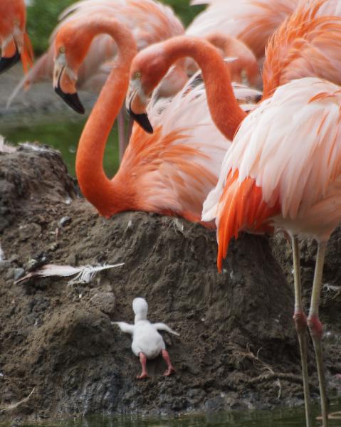 | WolfDrei: | Am 12. hatte ich keine Kamera anbei - logischerweise standen alle Tiere wunderbar. Heute war es schwieriger: relativ dunkel war es , um 13 Uhr beendete ein 30-Minuten-Wolkenbruch den Besuch. Immerhin konnte ich ein Flamingoküken mittelbar retten. Gegen 12. 55 bemühte sich ein gerade geschlüpftes Küken, wieder den Nesthügel zu erreichen - dann der Wolkenbruch, mußte mich selber retten. Ein Anruf von mir beim Oberpfleger brachte dann Rettung, das Küken lag schon halb im Wasser. (14.06.2016, 20:58) | ||
