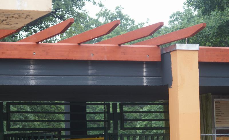| WolfDrei: | Haupteingang: Immer noch die Scheiben, die fehlen. Etwas mehr Erdreich wurde eingebracht, im vorderen Teil ist nun eine kleine Pfütze - permanentes Wasser? Im Moment sind die Kassen in Arbeit, die auf dem `` Dach`` überstehenden roten Holzteile sollen keine Abdeckung erhalten, es ist Zierde. Die lindgrünen Ausstreichungen der übrigen Betondecken erhielten wieder eine etwas grünere Panaschierung. Tierisches: das Wichtigste: es gab wieder nach langer Zeit eine Geburt bei den Przewalskipferden - wenn das Fohlen auch die Statistik sprengt (ca 95 % nördlich des Äquators werden im Mai geboren). Bei den Blauschafen ist zumindest ein Jungtier zu sehen. Die Geschlechterverteilung hat sich etwas angeglichen: V-Sika: 3,1 (ohne die 2 ``Nachgeborenen``), Berberh. 0,1; Montanawapiti 0,1; Zwergwapiti 0,2: Buchara 2,0; Weißlippenh. 0,1; Mhorrgazelle 3,1. Stehen eigentlich nur noch Maral und Schneeziege an. Bei den Flamingos laufen 4 herum - frau sitzt aber weiter. Der Bartgeiernachwuchs wurde wieder der Auswilderung zugeführt. Die 4 Chacopecaris machen sich gut, dito die Schopfhirsche. Der Varinachwuchs (0,1) soll demnächst auf die Insel. Anbei ein Teil der Bemalung eines Kunstfelsens der Präriehundanlage (05.07.2016, 19:59) | ||