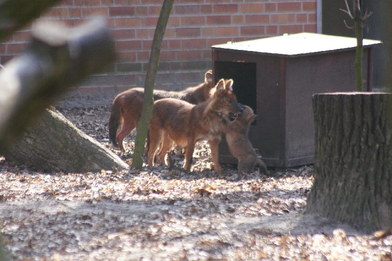| Sven P. Peter: | Wobei die Schabracken nun schichtdienst fahren müssen, nachdem sie bei dem Raumgewinn merkten, dass sie teritorial sind... Die neue Anlage sieht vieleicht nicht so schön aus, aber den Hyänen scheint es sehr gut zu bekommen den Raum zu haben. Aktuell ist die Gruppe von 3 Tieren mit zwei jungtieren auf der Anlage zu sehen. Beliebt ist auch das Rothund-Kino, da kein Sichtschutz zwischen den Anlagen besteht. (30.07.2008, 22:46) | ||