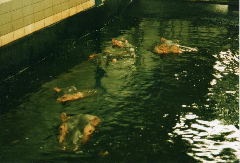 | Andreas Knebel: | Ich glaube, das Bassin ist schon ein gutes Stück größer als 6x6m. Für die Anzahl der Flusspferde natürlich trotzdem zu klein. Ich hab sogar ein Foto (leider schlechte Quali) vom Innenbecken gefunden. Nicht dass man da viel erkennen könnte... (02.09.2009, 20:51) | ||