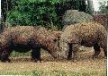| Michael Amend: | Hier ein Bild von einem sumatra-Paar in San Diego, rechts müßte theoretisch der Bulle Ipuh sein, der jetzt Zuchtbulle in Cincinnati ist, links die Kuh Barakas, die von 1988 bis 95 in San Diego lebte. (22.09.2008, 19:45) | ||