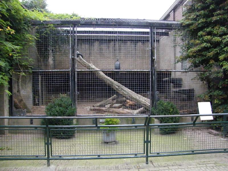 Ebenfalls Rotterdam, Löwenkäfig von 1857/58. Laut Chronik galt dieser rundum einsehbare Käfig damals als revolutionäre Neuentwicklung, weil man Großkatzen bis dahin angeblich ausschließlich in geschlossenen Käfigen mit nur einer Gitterfront gehalten hatte. In diesem Käfig wurden sehr viel später statt der Löwen Eisbären gehalten (ohne Wasserbecken!). (19.10.2008, 23:06)