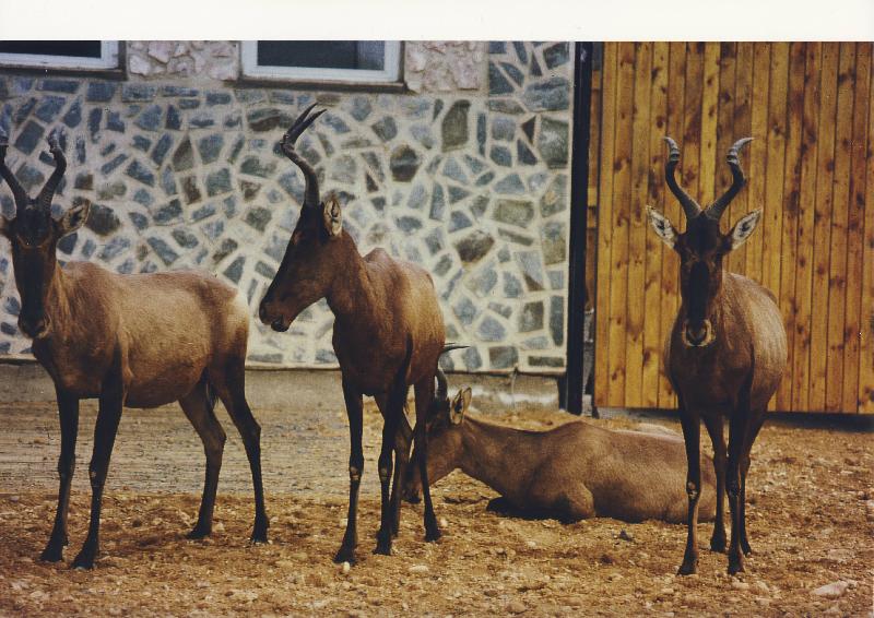 | WolfDrei: | Bezüglich der Kaamas in Dvur Kralove leider ein Beleg für die "negative Variante": im April 1974 gab es im "Importsafariteil" (dort in der langen Reihe, wo heute fast nur die kleinen Kudus stehen) ca 15 Kaamas, etwas später nach der Eröffnung dieser langen Reihe noch ca 6-7 Tiere, bald keine mehr. Auf der gegenüberliegenden begrünten Seite (heute große Kudus) dann ein Neuanfang, der auch nur wenige Jahre lief. Und Erfahrungen hatten sie dort durchaus (nun ja, Topis und Jacksons KA gab es auch nur 2-3 Jahre - wenn überhaupt so lange) 1. Aufnahme nach dem Primärimport (05.07.2009, 22:34) | ||
