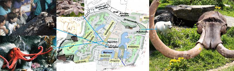 | Gerrit Wehrenberg: | Zoo Hannover: Masterplan B - Teil 1 Der Zoo Hannover wurde am 4. Mai 2015 150 Jahre! Herzlichen Glückwunsch! Das sollte für mich Anlass genug sein, mein seit langen nebenbei laufenden Utopie-Masterplan zu veröffentlichen. auf Wunsch nun auch im tiergarten-Forum. Im Folgenden werde ich detaillierte Ausführungen nach und nach einfügen. Die Reihenfolge soll den Rundgang entsprechen. Ich beginne mit einer Einleitung, dem neuen Eingangsbereich und der ersten Themenwelt. Auch Details des Zooplans noch werden hinzugefügt, damit die Anordnung nachvollziehbar ist. Bin an Fragen, Kommentaren, Gedanken und vllt einer kleinen Diskussion interessiert – aber bitte behutsam zerreißen. Wink ___ Beschreibung Schon mehrere Male wurden hier und an anderer Stelle mehr oder weniger umfangreiche Ideen und Wünsche zu den noch zu behandelnden Stellen im Zoo Hannover in Form von Neubauten oder Sanierungen und im gleichen Zuge Artabgänge sowie -zugänge vorgestellt und besprochen. Die Grundzüge des realen neuen Masterplans sind nun bekannt, dennoch möchte ich meine nicht auf Zeitpläne oder Kosten schauende Version an dieser Stelle mal eurem Urteil überlassen. Diese hat auch nicht den Anspruch einer realistischen Planung, da ich natürlich zahlreiche fachliche Wissenslücken habe. Über die Zeit sind immer mehr Ideen und Details dazu gekommen und so ist schließlich ein ziemliches Stück Text entstanden, den ich hier mal rein werfen möchte. Ein neuen Thread habe ich aufgrund der höheren Komplexität eröffnet. Einige Ideen und Aspekte aus Foren sind auch hier ganz klar mit eingeflossen. Es soll an dieser Stelle ein Gedankenexperiment und Diskussionsanstoß unter dem Motto ”Was kommt nach dem Expo-Zoo 2000?” sein. So könnten nur Einzelbestandteile dieser Überlegungen in eigene Planungen nicht nur für Hannover mit einfließen. Diese Beschreibung ist auch eine Vollversion, was meint, dass eine abgespeckte Variante denkbarer wäre. Selbes würde bezüglich der Tierhaltung gelten: Wenn man ein wenig Realismus einbezieht, wird man sobald keine volle Besetzung zusammen bekommen. Allerdings würde auch dieser Plan nicht mit einem Schlag, sondern nach und nach umgesetzt werden. Dies ist eine Überlegung vom Zoo in Hannover, die bestimmte Wertveränderung inne hat, welche natürlich hauptsächlich persönlicher Natur sind. Dies spiegelt sich oft in der Artenwahl wieder. Aber auch in den Ideen einer Artenvermehrung, vor allem durch die vermehrte Präsentation von Kleintieren sowie im Bau von begehbaren Tierhäusern ohne das aktuelle Konzept und Bild des Zoos komplett aus den Augen zu verlieren. Dennoch habe ich versucht darauf zu achten, dass der Park für das breite Publikum attraktiv bleibt, und andernorts geäußerte Überlegungen mit einbezogen werden sowie versucht derzeitige Schwachstellen zu schließen. Viele grobe Einzelheiten finden sich auch im realen Masterplan 2025+ wieder. Außerdem geht es von der Prämisse aus, Bauvorschriften im Bezug auf Schneelasten verändert würden und so bspw. Eben mehr Volieren entstehen könnten. Mit Hilfe eines von mir etwas aktualisierten Planes habe ich meine Überlegungen, natürlich unprofessionell, eingezeichnet. So kamen mir neue Ideen und andere bewiesen ihre Unmöglichkeit. Fotokollagen sollen einen ungefähren Eindruck bieten. Sanierungen und Bau von Personalbauten habe ich außen vor gelassen. Diese werden gerade am aktuellen Antilopenring umgesetzt, wobei meine Planungen wohl eine andere Anordnung erfordern würden. Allerdings würde meine Planung theoretisch eine leichte Umordnung ermöglichen. Der Zooaufenthalt würde durch diese Planungen teilweise erheblich verlängert. Vielleicht wären Mehrtages-Karten oder Wochentickets sinnvoll – gerade für Besucher von Außerhalb. Vergleichbares gibt es in Disneyland (hier erlaube ich mir mal den Vergleich). Zusätzlich würde ich, wie bereits mehrere Einrichtungen, einen Smartphone-Zoofüher anbieten. Kernpunkte wären ein Zooplan mit aktuellem Standpunkt sowie ortsbezüglichen Informationen zu Themenwelt, Tierarten und -individuen, Historie usw. Meine Grafiken sind noch mit dem alten Zoologo entstanden, dieses würde eben ersetzt. Wenn die aktuelle Darstellungsweise des Zooplans beibehalten würde, würde ich auf jeden Fall endlich den Icon der seit 2001 nicht mehr im Bestand befindlichen Sitatungas (auch aus der aktuellen Version) herausnehmen. Ein Icon für Kleine Kudus bestand bereits. So viel zu den kleinen Details... Big Grin Ziele Übergeordnete Ziele - Weiterentwicklung des Geozoo-Konzepts - Erneuerung bzw. Sanierung noch zu behandeln der Bereiche und Anlagen - Mehr für Besucher einsehbare/begehbares Tierhäuser - Ausbau des Tierbestandes und möglichst weitreichender Erhalt des bestehenden Bestandes - Durch Etagenbau auch in der Tierhaltung kann ein Tierbestand unabhängiger von der beschränkten Zoofläche aufgebaut werden. Zielarten Diese kleine anfängliche Liste spiegelt Must-have- und Traditionsarten wieder. Erneut zeigen: - Gepard - Großkamel - Hyäne - Krokodilform - Kuhantilopenart - Nasenbär - Riesenschildkröte - Tapir - tropisches Wildrind - Walross Neu etablieren: - Manati - Schmetterlinge - ozeanische Fauna ausbauen und so starkes tiergärtnerisches Herausstellungsmerkmal - Kleintiere (Volieren, Terrarien, Aquarien etc.) Hinter jede der Themenweltnamen sind die geografisch beinhalteten Gebiete beschrieben. 1. Eingangsbereich • Verwaltung, Service, Shops und Kassen aus dem Zoozentrum an den Rand verlegen, um Platz zu gewinnen Um mehr Platz für die Zootierhaltung zu schaffen würde das aktuelle Eingangsgebäude abgerissen und ersetzt werden. Der neugestaltete Eingangsbereich würde wieder (wenn es mich nicht täuscht) im Stil der Hannoverschen Architekturschule gestaltet. Dies ist ein regionaler, zur Gründung des Zoos auch verwendeter Baustil – ob dies auch im Zoo so ist – dafür hab ich keine Fachkenntnisse. Hierbei soll sich tatsächlich an den his
