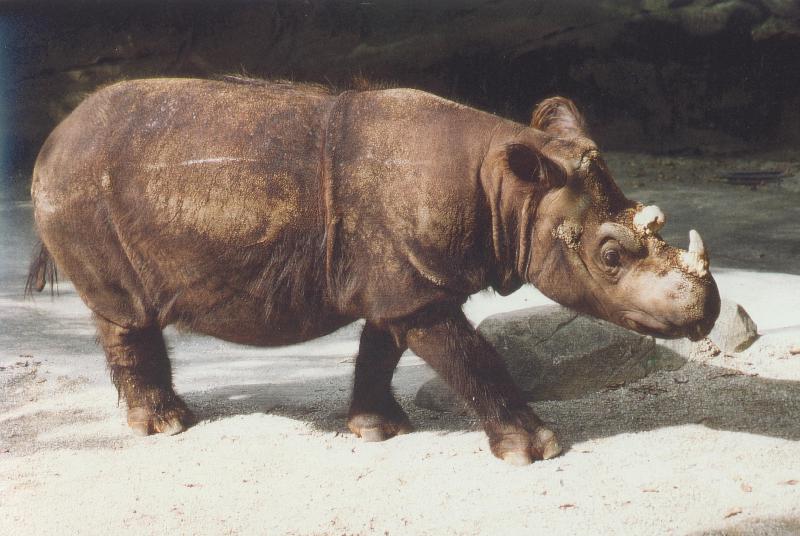 | Götz Heilemann: | Erledigt! Ich müsste noch ein Papierbild von dem Sumatranashorn im Bronx-Zoo Ende der 90er haben. Allerdings sieht man nur den Kopf und das Horn, wenn ich mich recht entsinne. Das Gehege war nicht sonderlich gut zugänglich und das Nashorn lag im Schatten. Ich suche dann mal. (02.02.2016, 09:44) | ||
