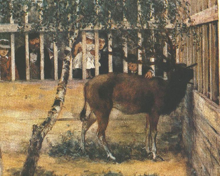 | Michael Mettler: | Nochmal zurück zum Davidshirsch-Gemälde von Menzel und der kurzen Diskussion dazu: Ich lese gerade das Buch "Die Schaulust am exotischen Tier" von Gerhild Kaselow, darin geht es um die Darstellung zoologischer Gärten in der Malerei. Auch das Bild von Menzel wird behandelt und darauf hingewiesen, dass es durch den Künstler mit großer Wahrscheinlichkeit nachträglich überarbeitet wurde. Auch hier wird auf die zeitliche Diskrepanz wegen der Datierung hingewiesen und darauf, dass erst 1876 erstmals Milus in den Berliner Zoo gelangten. Die Spitzen, die durch den Zaun ragen, werden übrigens als Schirm- bzw. Stockspitzen von Besuchern interpretiert. (26.06.2017, 23:09) | ||