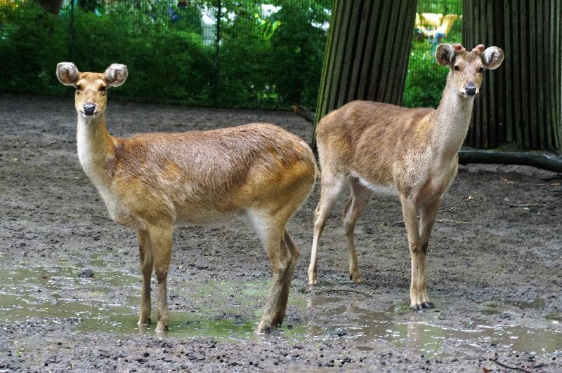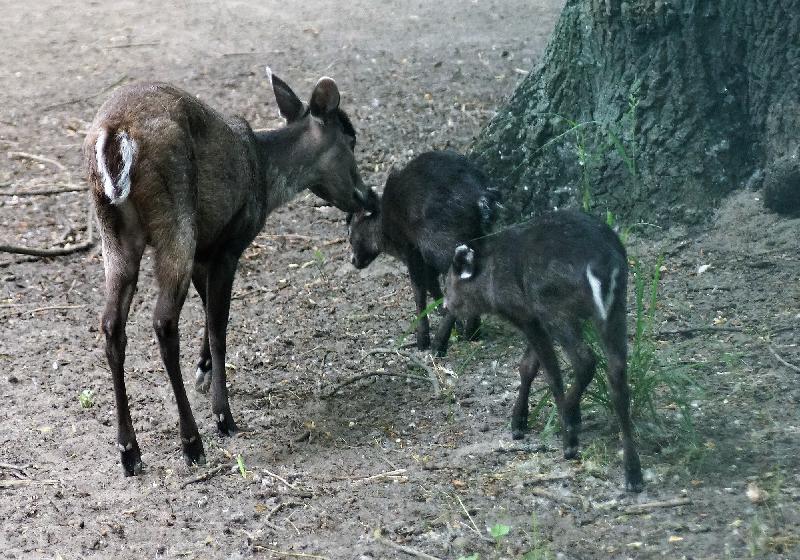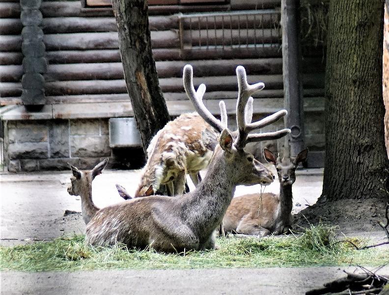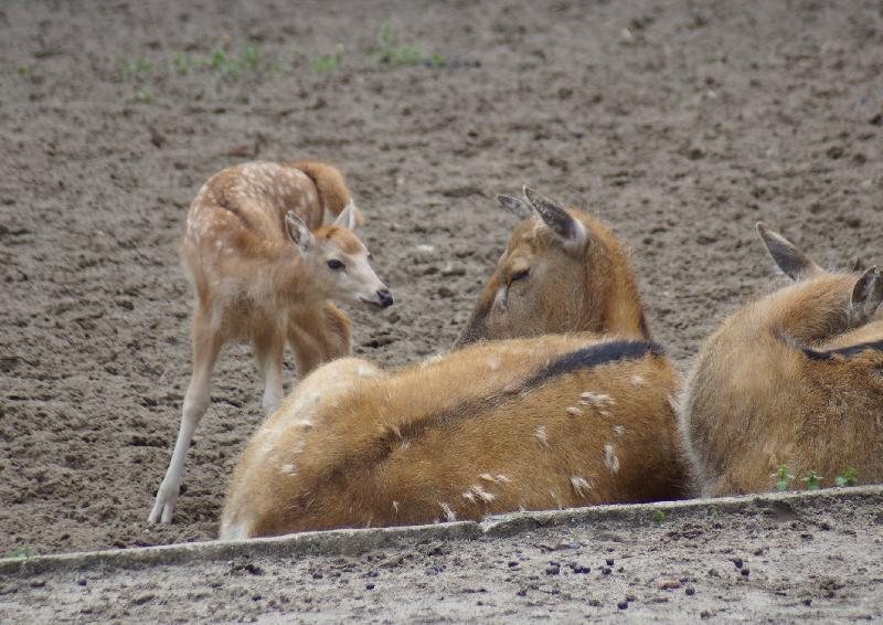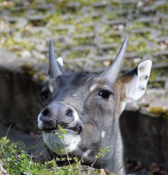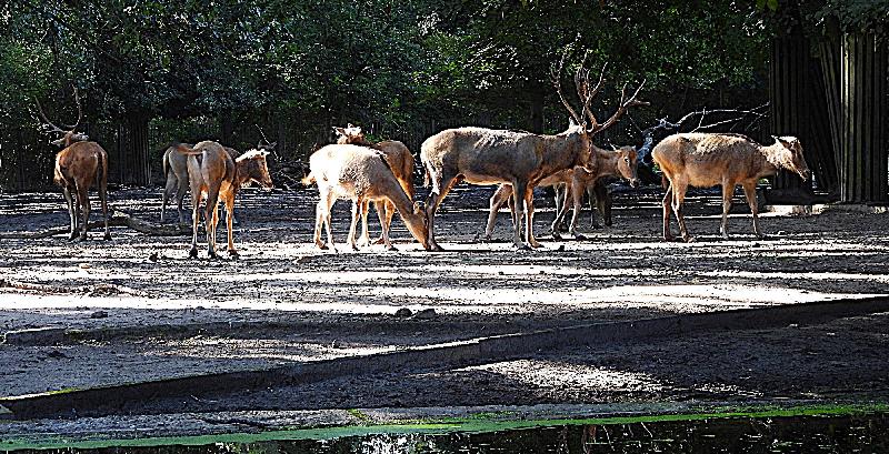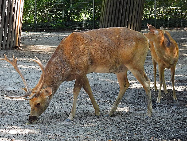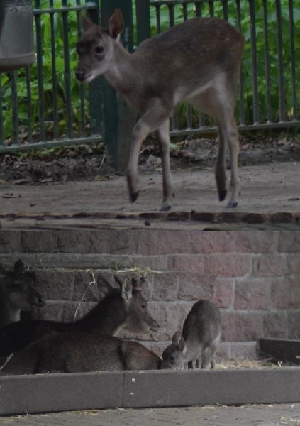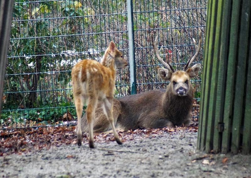 | W. Dreier: | Weiteres zum Dienstag - etwas Vogel-lastig. Allgemeines: eine 2. Geburt bei den Vietnam-Sikas, beide weiblich Durch die Geburt bei den Sichuans wurde der Bulle in das Goldtakingehege ``verlegt``. Wir wunderten uns, dass plötzlich 6 Goldtakins im Seitengehege waren, Nachdem seit 2 Wochen kein Sibirien-Uhu zu sehen waren - nun: europäische Uhus. (Nähe Möwenkuppel) Nun: die 4 Barasinghas (21.04.2021, 17:15) | ||