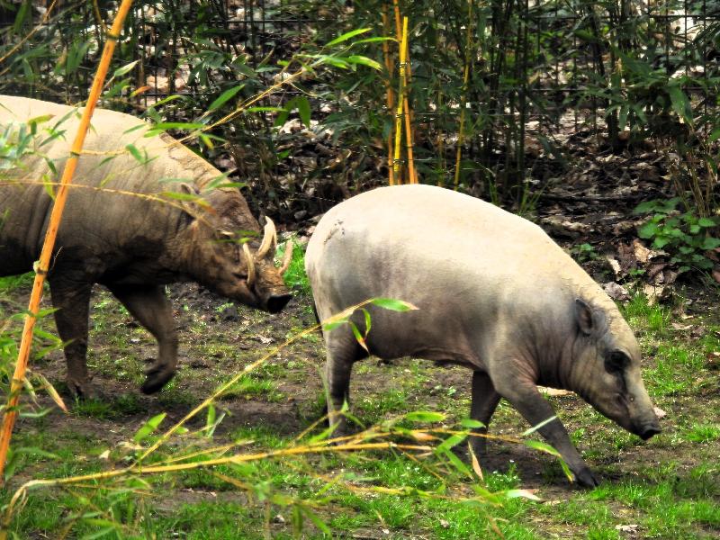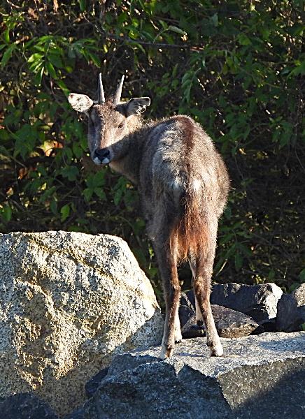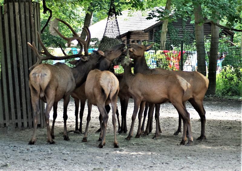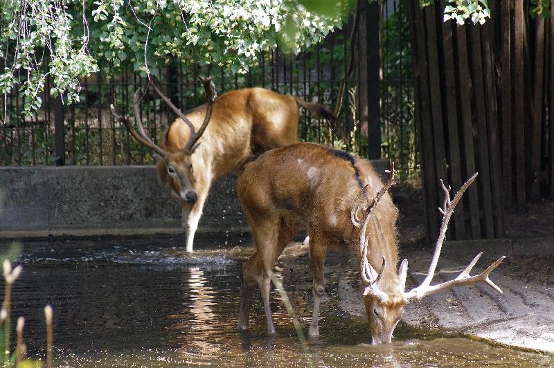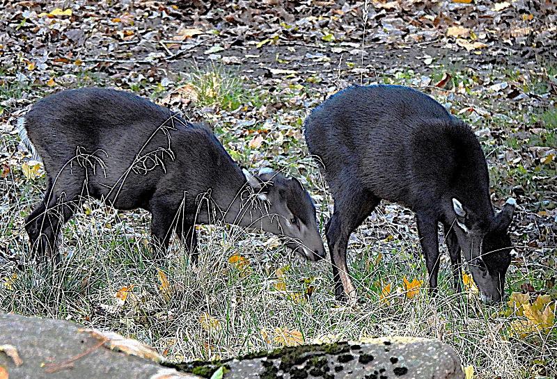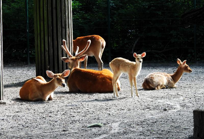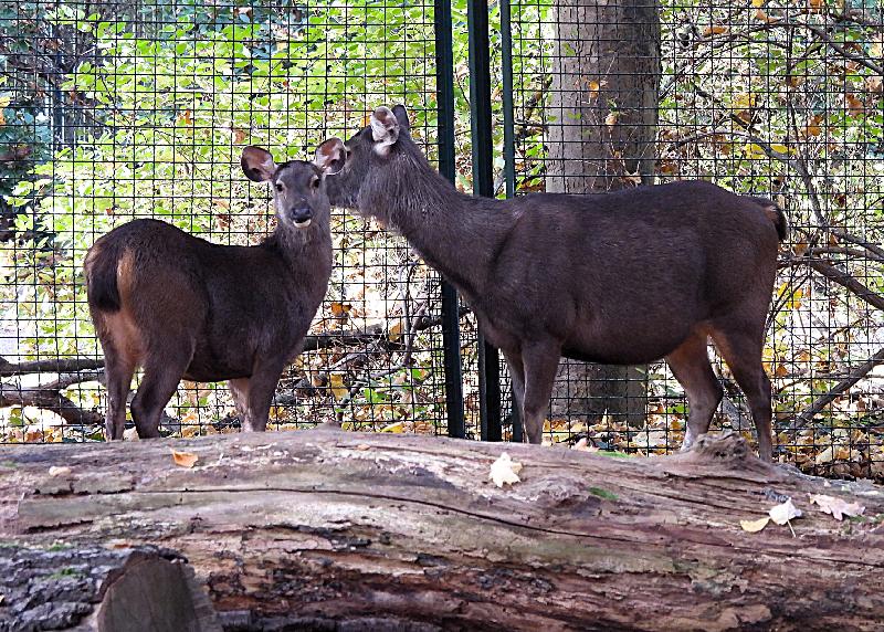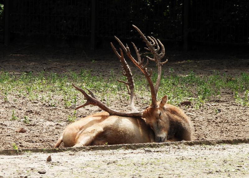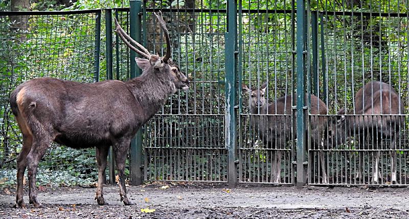 | W. Dreier: | Weiteres zum Dienstag - etwas Vogel-lastig. Allgemeines: eine 2. Geburt bei den Vietnam-Sikas, beide weiblich Durch die Geburt bei den Sichuans wurde der Bulle in das Goldtakingehege ``verlegt``. Wir wunderten uns, dass plötzlich 6 Goldtakins im Seitengehege waren, Nachdem seit 2 Wochen kein Sibirien-Uhu zu sehen waren - nun: europäische Uhus. (Nähe Möwenkuppel) Nun: die 4 Barasinghas (21.04.2021, 17:15) | ||