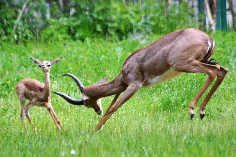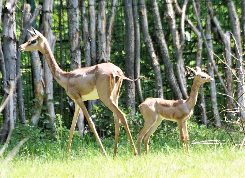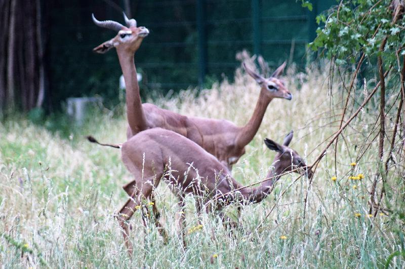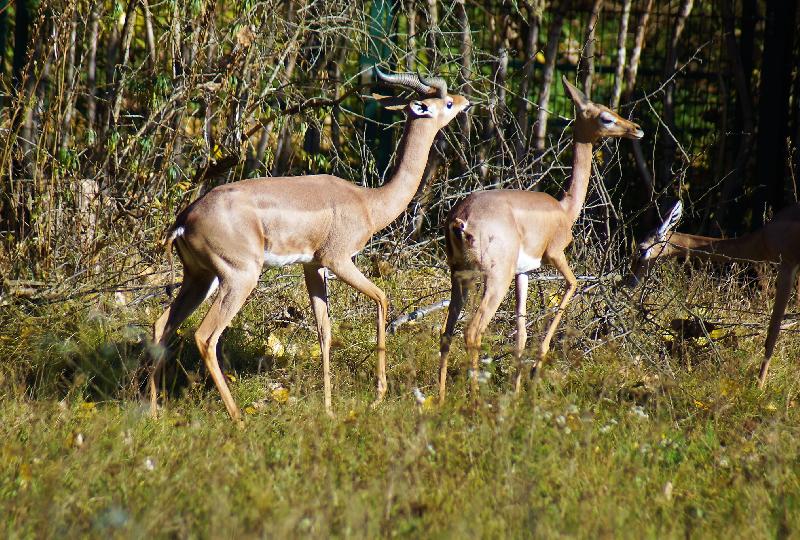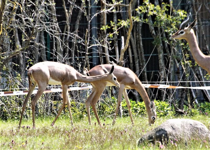 | W. Dreier: | Das neue Paar der Gerenuks mit dem jüngsten Weibchen der ``alten`` Gruppe (28.04.2021, 19:10) | ||