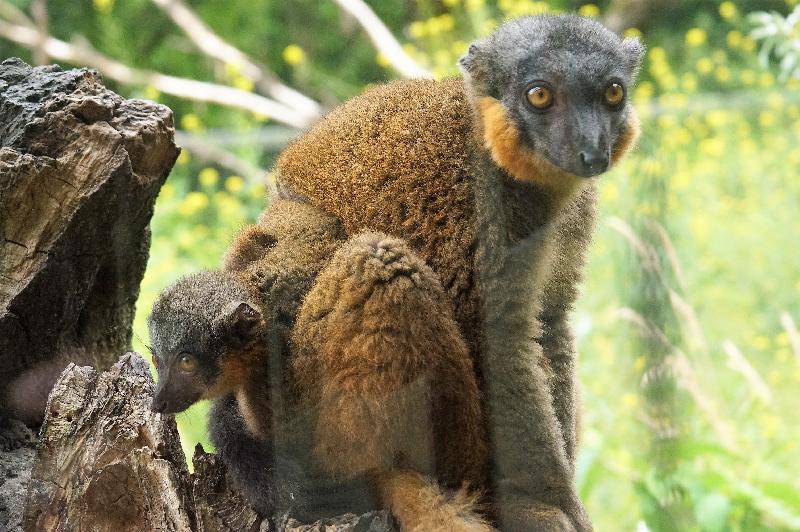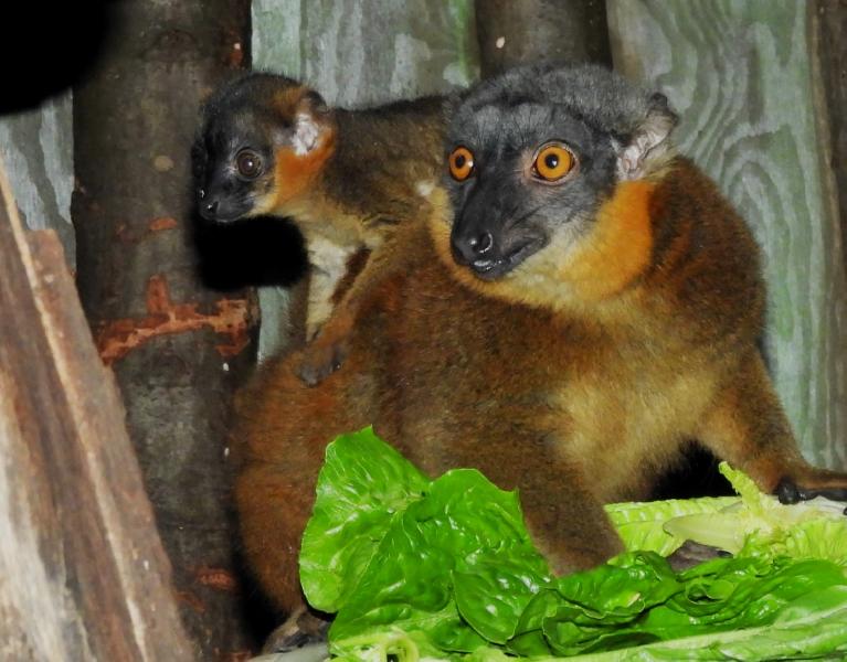 | W. Dreier: | Mutter und Nachwuchs beim Gelbbart-Maki - heute etwas besser sitzend (28.04.2021, 19:07) | ||