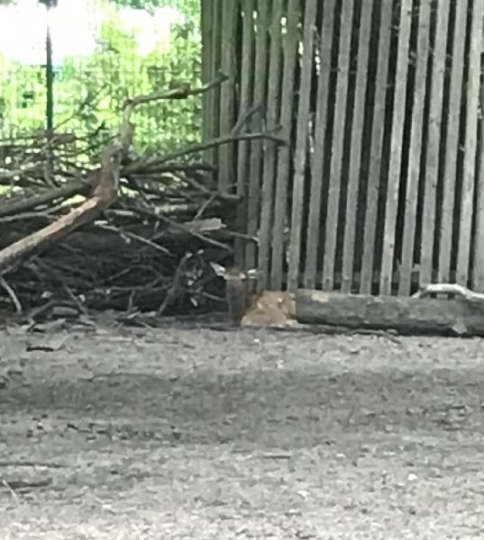 | W. Dreier: | Und noch ein 2. Nachtrag - zum Bild: nun geht es wohl dem Dach des ABH ``an den Kragen``. Ansonsten: das ``Gebuddele`` von vor 10 Tagen entpuppte sich als Reparaturarbeit: an vielen Stellen wurden ehemalige Kabelkanalausfüllungen , Löcher oder andere brüchige Wegpassagen neu asphaltiert. Tierisches : beim Uhu in der ehemalige Anlage für Sibirische Uhus handelt es sich um ein Tier, dass nicht in der Vogelschau ``mitspielen`` wollte. (29.04.2021, 18:08) | ||