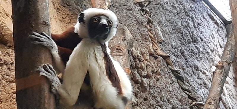 | Regina Mikolayczak: | Erschreckend habe ich in der ZTL gesehen, dass es nun in Deutschland kein Wasserreh mehr gibt! Ich hatte nachgesehen, da das Schild im Tierpark nicht mehr war und hatte gedacht, im Zoo gibt es noch eines, aber dort ist das letzte Weibchen wohl im Dezember 2024 gestorben... Zum Abschluss noch ein Bild vom Sifaka (04.01.2025, 16:36) | ||