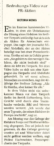 | W. Dreier: | In der B.Z. "Die Stimme Berlins" (Eigenwerbung - ich lese die "Berliner Zeitung" - damit nicht identisch) Im Netz also von der B.Z.: "Zu wenige Besucher. Baustopp in Berliner Zoo und Tierpark" - hat da jemand Zugang? (25.12.2024, 16:50) | ||
