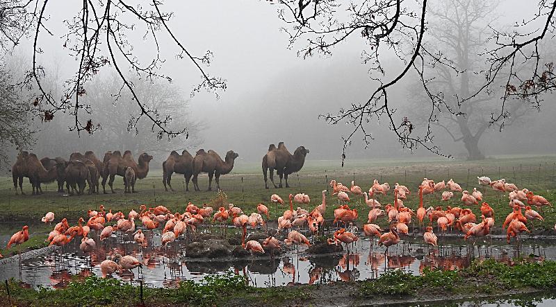 | W. Dreier: | Von 30 °C am Dienstag auf heutige 12° - und Regen "satt" nach einer Stunde. Mein Co konnte leider nicht anders. Dennoch interessante` `Vermeidungsreaktionen``: die meisten ließen den Regen über sich ergehen: Addaxe, Trampeltiere, Wisente, die Vicugnas flach liegend ! (die haben aber keine ``Unterstelle``. Völlig unbeeinflußt waren die ``indischen Sumpfhirsche - also die Barasinghas (13.05.2021, 17:21) | ||