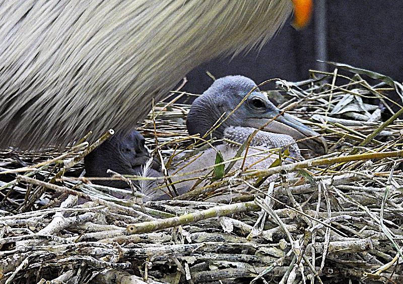 | W. Dreier: | Heute nun der erste "reguläre" Durchgang bei annehmbaren Lichtverhältnissen. Pelikane - wie es die Eierschalen vermuten ließen. jetzt 2 Schlüpflinge. Und sie wachsen! (07.01.2025, 16:55) | ||