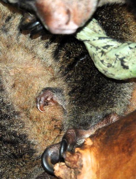 | W. Dreier: | Im Brehmhaus wieder der unter der Mama herausschauende Kuskus-Nachwuchs. "Man" krabbelt nach Aussagen aber auch schon herum. (25.02.2025, 11:49) | ||