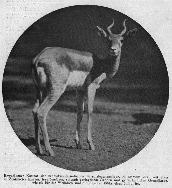 | Michael Mettler: | Zur Abrundung des Gesagten: Foto eines Hirschziegen-Kastraten aus einem Artikel von Zukowsky "Weitere Mitteilungen über die Systematik der Hirschziegenantilope", Carl Hagenbeck's illustrierte Tier- und Menschenwelt, 3. Jahrgang, Heft 3 (September 1928). (13.02.2021, 09:09) | ||