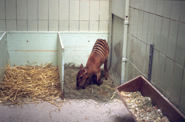 Dafür hätte ich noch einen potenziellen Rundbaubewohner zu bieten: Wo wurden eigentlich in Frankfurt die Quokkas gehalten? Der Zoo hatte eine blühende Zucht, die Ausgangsgruppe bestand bereits aus 7 Tieren und hatte noch im Ankunftsjahr 5 Junge. Auch wenn es sich um nur hasengroße Kängurus handelt, dürften das wohl ein paar zuviele für die Unterkünfte im Kleinsäugerhaus gewesen sein. Und auf dem Foto im Jahresbericht 1958 (auf der selben Seite wie das Zebraduckerfoto) sind zwischen der üblichen Blätterdeko im Hintergrund Fliesenfugen zu erkennen... Habe zwar eben in den Zooführern nur Stichproben vorgenommen, aber die Quokkas werden anscheinend nirgends erwähnt. (17.12.2007, 22:37)