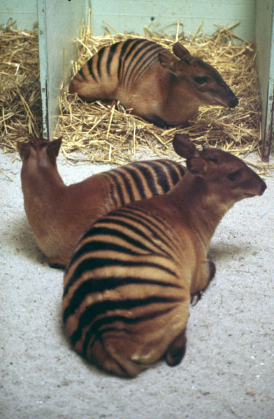 Die Rotducker im Zoo Berlin kann man mittlerweile sehen, sie leben im ehemaligen Pferdeantilopen- Gehege mit den Okapis zusammen. Zur Zeit lässt sich sogar sehr gut die Aufzucht eines Jungtiers beobachten! (29.04.2005, 00:00)