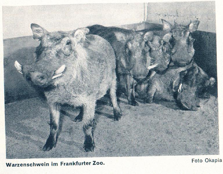 Laut JB wurden 1960 drei Warzenschweine in Frankfurt geboren, also könnte das unten eingestellte Foto wirklich 1961 entstanden sein. (23.12.2007, 10:57)