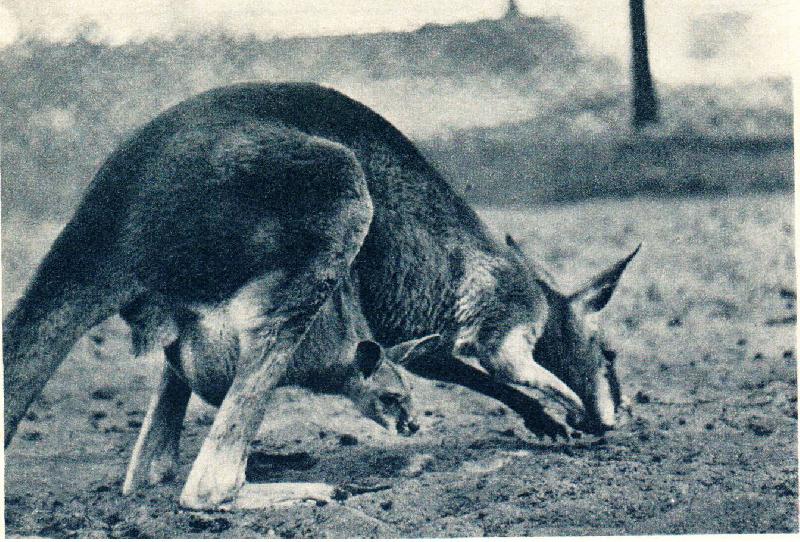 Aus der selben Ausgabe und mit ganz großem Rundbau-Verdacht: Rote Riesenkängurus. Indizien: Die meisten Fotos waren von Grzimek bzw. Okapia, und die im Hintergrund unscharf zu sehenden Zaunfundamente deuten in ihrem Verlauf auf "Tortenstückgehege" hin... (22.12.2007, 21:25)
