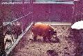 Und ich habe nach Jahresberichten und Zooführern, nach "Zoologischem Garten" und Sammelalben die nächste mögliche Quelle für Rundbau-Fotos in Angriff genommen: Die Zeitschrift DAS TIER, bei der Grzimek einer der Gründer und Herausgeber war. Davon habe ich einige Ausgaben aus den Jahren 1961 bis 1963, und die wimmeln tatsächlich nur so von mehr oder weniger eindeutigen Frankfurt-Fotos, von der Zwergziege bis zu Giraffengazelle, vom Komodowaran bis zum Affenadler. Und "natürlich" stieß ich dabei auch auf Rundbau-Fotos, die ich noch nicht aus anderen Publikationen kannte. Beispiel 1: Warzenschweine. Da die bewusste Ausgabe im September 1961 erschien, muss das Foto im Rundbau entstanden sein, wenn die Schweine noch 1962 beim Einzug der Moschustiere dort lebten (siehe unten). Wie man sieht, gab es zum Zeitpunkt der Aufnahme noch keine gefliesten Wände. Wann das war, lässt sich vielleicht anhand der Zahl und des Alters der Jungtiere abgleichen, habe ich noch nicht mit den Jahresberichten verglichen. (22.12.2007, 21:22)