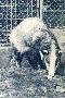 Ein' habbich noch: Schweinsdachs aus der Ausgabe von Juni 1961. Definitiv im Rundbau fotografiert, denn zu diesem Foto gibt es einen kurzen Artikel über diese Tiere. Hier wird dann auch geschildert, dass man ihr Gehege wegen ihrer unerwarteten Kletterfähigkeiten bald übergittern und danach (!) auch noch untergittern musste. Ein interessantes Detail auf dem Foto: Hinten rechts sieht man offensichtlich eine Gehegetür, da von außen eine Kette vorgehängt ist, wie man es gemeinhin macht, um Besuchern den Zugang zu verhindern. Hinter dem mit Maschendraht zusätzlich gesicherten Gehegezaun links kann man schemenhaft die niedrige Vorpflanzung erkennen. Vielleicht hilft dieses Detail dabei, das entsprechende Gehege herauszufinden: Hatten alle Außengehege einen Zugang vom Besucherweg her, oder kam der Pfleger in manche nur rein, indem er andere durchquerte? (22.12.2007, 21:46)