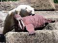 | Liz Thieme: | dieses Bild stammt aus dem Metro Zoo in Cleveland. Hierbei handelt es sich um Eisbärin Aurora (*1982) die sich an einem künstlichen (etwas schlanken) Walroß erfreuen darf. Ist doch mal was anderes als die Basteleien für die Leipziger Löwen und Erdmännchen ;) (02.10.2009, 23:43) | ||