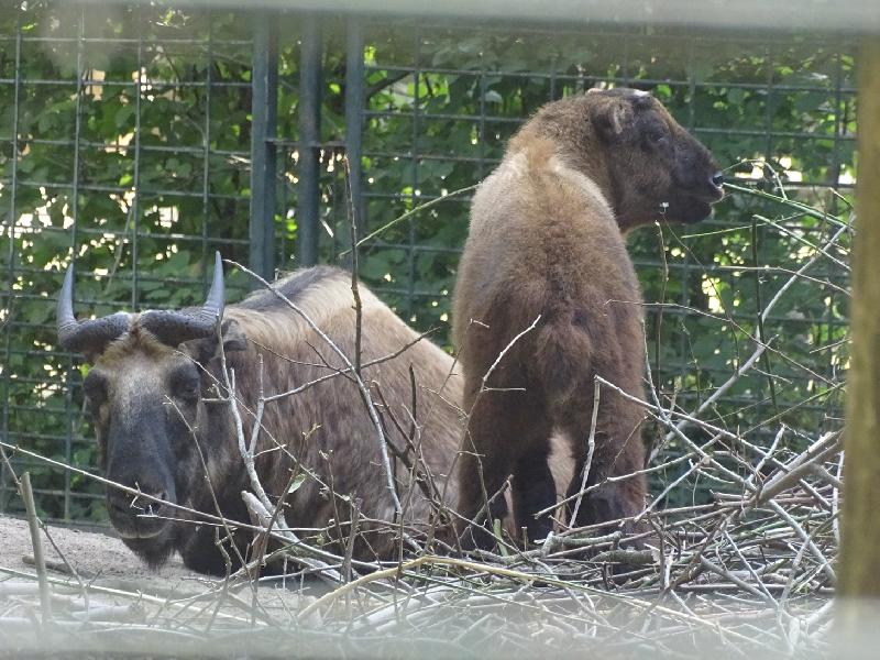 | Regina Mikolayczak: | Bekannt ist ja, dass es bei den Mishmi Takinen Nachwuchs gab... Trotz des ungünstigen Zauns konnte ich ein nettes Größenvergleichfoto machen. Nebenan waren jetzt übrigens die Schwarznasenschafe untergebracht. Die eigentlich begehbare Vari-Anlage, wo diese bei meinem letzten Besuch waren, wird nur noch von Lemuren bewohnt. Laut Schild ist diese auch ab 15.00 Uhr, wenn nur die Kattas draußen sind, betretbar! Bei den Varis gibt es wohl zu aufdringliche Tiere, so dass diese vorher die Anlage alleine (ohne Besucher) beleben. (10.08.2025, 09:12) | ||