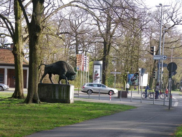 | Michael Mettler: | Beim Wisent wäre ich mir auch nicht so sicher, ob dessen lebendes Modell im Zoo zu finden war. 1935 waren Wisente schließlich noch äußerst seltene und schwer zu bekommende Tiere. Vielleicht lebte das Vorbild in Springe, zur fraglichen Zeit (und schon seit 1928, als das Wisentgehege gegründet wurde) gab es dort den aus Berlin eingestellten "Gründerbullen" Bernstein alias Iwan. Ich vermute angesichts ihres Entstehungsdatums, dass Wisent und Hirsch als Skulpturmotive gewählt wurden, um "deutsches Wild im deutschen Wald" zu symbolisieren. Gerade am Standort Zoo hätte ansonsten schon damals eine Antilope viel besser gepasst... (12.05.2015, 11:35) | ||