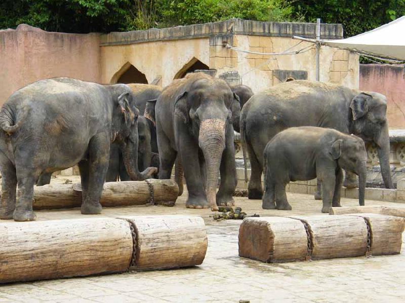 | Michael Mettler: | Kibo (heute in Valencia), im Hintergrund die zweite Altkuh Bibi. Soweit ich mich erinnere, war Kibo damals innerhalb der annähernd gleichaltrigen und -großen "Jugendgruppe" von seinen Gefährtinnen Heri und Mahari schon von weitem immer an seinen beiderseits nach vorn eingerollten oberen Ohrrändern unterscheidbar. Ein weiteres Merkmal war der fehlende rechte Stoßzahn, den er sich schon als Jungtier bei einem Grabensturz (bei dem er ansonsten unverletzt blieb) so abgebrochen hatte, dass er nicht mehr nachwuchs. Kurioserweise war genau dasselbe einst seiner Mutter Beira passiert, als sie noch in Rotterdam lebte. Auch hier im Hintergrund ein zoohistorisches Detail: Das sind nämlich die im aktuellen Zoo-Hannover-Thread von Ulli und mir erwähnten mobilen Besucherstühle. (18.09.2015, 07:32) | ||