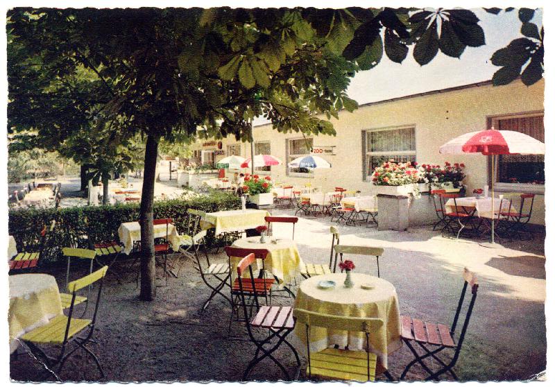 | Michael Mettler: | Ansichtskarte des Zoo-Restaurants, postalisch gelaufen 1964. Der Bereich, in dem sich heute der Shop befindet, wurde dann irgendwann zu einem separaten SB-Restaurantbereich umgebaut, während der Rest des Gebäudes "normales" Restaurant (also mit Bedienung) blieb. Wie es in den letzten Jahren seines Bestehens war, weiß ich nicht mehr; ich habe das Restaurant ohnehin äußerst selten besucht und war damals einige Jahre lang auch kaum im Zoo. (14.02.2017, 21:15) | ||