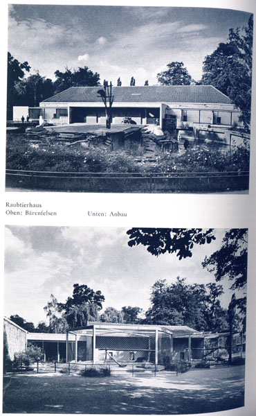 | Michael Mettler: | @Jan: Kein Wunder, das IST auch das spätere = heutige Eingangsgebäude. Die nebenstehende Ansichtskarte von 1942 zeigt diesen Teil der Gebäudefront aus ähnlicher Perspektive im Zustand vor der Kriegszerstörung (noch mit Giebeldach). Diesen Gebäudeteil nahm man nach dem Krieg als ersten wieder in Gebrauch, während der Part links vom Bildrand und zur vom Betrachter abgewandten Seite hin in den damaligen Zooplänen als Kriegsruine markiert ist. Übrigens muss ich einen Punkt von der Beschreibung der Nashornseite korrigieren: Für die Pflanzenzerstörung waren laut einem ZG-Artikel (komme auf den noch zurück) nicht die Nashörner, sondern die Tapire zuständig, die sich an den Seitenwänden aufrichteten, um an das leckere Grün zu gelangen. Da im URANIA-Artikel sowohl Flachland- als auch Schabrackentapire für das Haus erwähnt sind, könnten zeitweilig sogar beide Innenanlagen mit Tapiren besetzt gewesen sein. (28.12.2016, 18:48) | ||
