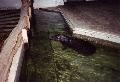 | Michael Mettler: | P.S. zur Erläuterung für diejenigen, die das Haus nicht mehr gesehen haben: Die hellen Dreiecke an der Decke sind verglaste Öffnungen im Beton, wodurch die zu sehenden Anlagen gut ausgeleuchtet waren - im Gegensatz zum bewusst dunkel gehaltenen Besucherraum. Die Gräben beider Anlagen konnten je nach Besatz trocken oder mit Wasserfüllung verwendet werden und hatten jeweils an beiden Enden Ausstiege, der Graben der Nashornanlage verlief hinter der mit Baumstamm gekrönten Trennmauer parallel zum Tapirgraben. Das erhöhte Pflanzbeet an der Wand im Hintergrund bewährte sich nicht, da die Bepflanzung in Reichweite der Spitzmaulnsahörner war und von diesen abgeerntet wurde. Wie man auf dem Bild sieht, blieben nur die Pflanzen oberhalb des Grabeneinstiegs verschont - der ergab die rettenden Zentimeter Abstand. Ursprünglich gab es wohl auch auf der Elefantenseite des Hauses, allerdings außerhalb des Stalles Pflanzkästen. wo die Bepflanzung allerdings schnell der Rüsselreichweite der Tiere und den dort viel schlechteren Lichtverhältnissen zum Opfer gefallen sein soll. Einer der Kästen vor dem linken Ende des Elefantenstalles enthielt eine Schautafel mit einer Elefanten-Geburtenliste. (25.12.2016, 13:54) | ||