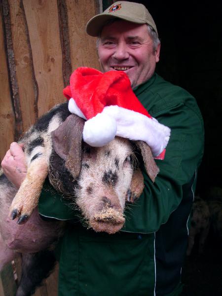 | Zoo Neunkirchen: | Geld für die Schweine!  DAK überreicht Spende für die Turopolje-Schweine  Der Zoodirektor und die Schweine haben sich sehr gefreut über die Spende, die ihnen Ralf Günder, Bezirksleiter der DAK, überreicht hat. Beim diesjährigen Kinderfest im Neunkircher Zoo hatte die DAK einen Stand mit vielen Geschenken, Infos, einer Körperfettmessung und einem Glücksrad. Beim Glücksrad konnte die DAK rund 300 Euro für den Zoo einnehmen. Das Geld soll in den Bau des neuen Geheges für die kürzlich angeschafften Turopolje-Schweine fließen. Momentan sind sie noch ganz in der Nähe ihrer Verwandten, der Hängebauchschweine, in einem recht großen und für die Schweine auch interessanten Gehege mit viel Möglichkeit zum Wühlen untergebracht. Anfang nächsten Jahres sollen sie aber in ein noch schöneres Gehege am Nordeigang umziehen, genau dort wo der zukünftige "Bauernhof" entstehen soll.  Der Besuch bei den Turopolje-Schweinen endete damit, dass Ralf Günder von der DAK mit seinem großen Scheck und Zoodirektor Norbert Fritsch nachher etwas "versaut" waren. (16.10.2009, 09:52) | ||