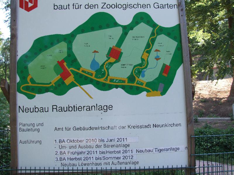 | Liz Thieme: | habe gerade das Investitionsprogramm 2016 gefunden. Ist ein ganz interessanter Überblick über die Projekte des Zoos. Investitionsprogramm bis 2016 Die Stadt Neunkirchen wird bis zum Jahr 2016 knapp 4,5 Millionen Euro in den Zoo investieren. Bereits seit 1994 wurden 3 Millionen aufgebracht, um die Tierhaltung zu optimieren und die Infrastruktur für die Besucher zu verbessern. Insgesamt stieg damit die Attraktivität des Zoos. Die Fortschreibung des Zookonzepts umfasst einige Neuerungen, auf die sich Besucher und Freunde des Zoos in den nächsten Jahren freuen können. Geplante Projekte: Vergrößerung der Bärenanlage Das Bärengehege wird auf eine mehrfaches seiner bisherigen Größe erweitert. Die abwechlungsreiche Anlage mit mehreren Rückzugsmöglichkeiten soll die Vergesellschaftung der Braunbären (später asiatische Bärenart) mit den asiatischen Rothunden ermöglichen. Anlage für Leoparden, Löwen und Tiger an dem neuem Raubkatzenweg Auf der Reservefläche hinter dem Picknickplatz am Bärengehege laufen zurzeit bereits die Bauarbeiten für die neuen Raubtiergehege. Der "Raubtierweg" wird später über ein bisher ungenutztes Gelände des Zoos führen. Hier wird man ausschließlich asiatische Raubtiere sehen. Allesamt vom Aussterben bedrohte Großkatzen, deren Haltung in den Zoos einen wichtigen Beitrag zum Erhalt ihrer Arten darstellen. Das erste Gehege am Rautierweg wird eine Anlage für Schneeleoparden, die sich an einem steilen, lichten Waldhang befinden wird. In der Fortsetzung des Weges entsteht ein Gehege für den Sibirischen Tiger. Die Planer versprechen einen "gitterfreien Blick aus verschiedenen Perspektiven" auf die größte Raubkatzenart. Neben dem Tiger-Territorium wird eine ebenso große Anlage für Indische Löwen errichtet. Das fazinierende Brüllen dieser beliebten Raubtierart wird dann wieder durch den Zoo hallen. Dieser neue Teil des Zoos soll 2011 fertig sein. Neue Tropenhalle Eine hochmoderne neue Tropenhalle, soll die zweckmäßige alte Zoo-Halle ersetzen. Für dieses komplexe Großprojekt werden zur Zeit Ideen und Planungen aufgenommen. Die neue Zoohalle wird an der gleichen Stelle der jetzigen enstehen, eine Schließung der alten Zoohalle ist während der Baumaßnahme daher leider unumgänglich. 2012/2013 soll die Tropenhalle öffnen. Afrika-Anlage mit Giraffen, Zebras, Strauße und Flamingos Das Gemeinschaftsgehege für Giraffen, Zebras und Strauße soll erweitert werden. Umliegende Flächen werden freigesetzt (z. B. durch Abriss des alten Leopardenhaus), um eine Erweiterung für die Afrika-Anlage zu ermöglichen. In diese Anlage wird auch ein neuer Bereich für Flamingos eingebettet. Kamelhof mit zentralem Haustierbereich Ein neuer, zentraler Bereich für alte Haustierrassen (z. B. Bentheimer Landschafe, Thüringer Waldziege) wird im unteren Zoobereich, oberhalb des Nordeingangs entstehen. Derzeit besteht dieses Gelände aus vielen Einzel-Gehegen. Ein neuer Kamelhof wird Platz für Trampeltiere und Dromedare bieten. Bereits jetzt wurden einige Planungsschritte umgesetzt, die Weiterentwicklung wird parallel zu den anderen Projekten erfolgen. Komplett fertig soll es 2013 sein. Eingangsbereich und weitere Kleinprojekte Auch andere, kleinere Projekte umfasst das neue Zookonzept. So steht auch die Modernisierung des Eingangsbereichs mit Schaffung eines begehbaren Zooshops auf der Projektliste. Auch für einen "Geierfelsen" und die Verschönerung des Ententeichs wurden die Planungen aufgenommen. (24.09.2009, 18:14) | ||