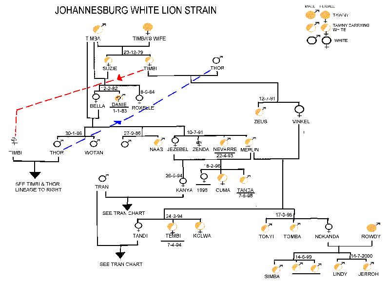 | cajun: | @W.Dreier. Weiter unten im Thread (2008) hatte ich die damals bekannten Linien aus Pretoria und Johannesburg als Stammbaum eingestellt. Ausgehend von den Gründertieren. 2015 sah ich in Pretoria noch eine gemischte Gruppe auf den Raubtierterassen. (05.05.2021, 22:20) | ||