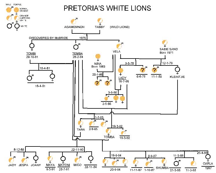 | cajun: | Ich habe vor einiger Zeit im Internet mal zufälligerweise die Stammbäume der weißen Löwen von Timbavati und der anderen Linie in Zoos gefunden. Ich versuche die mal über die Fotofunktion einzustellen. Falls es nicht klappt, ich kann die auch den- mehr oder minder Interessierten mailen.:-) (11.11.2008, 19:10) | ||