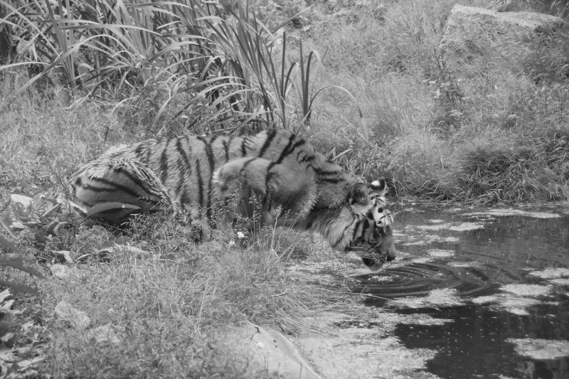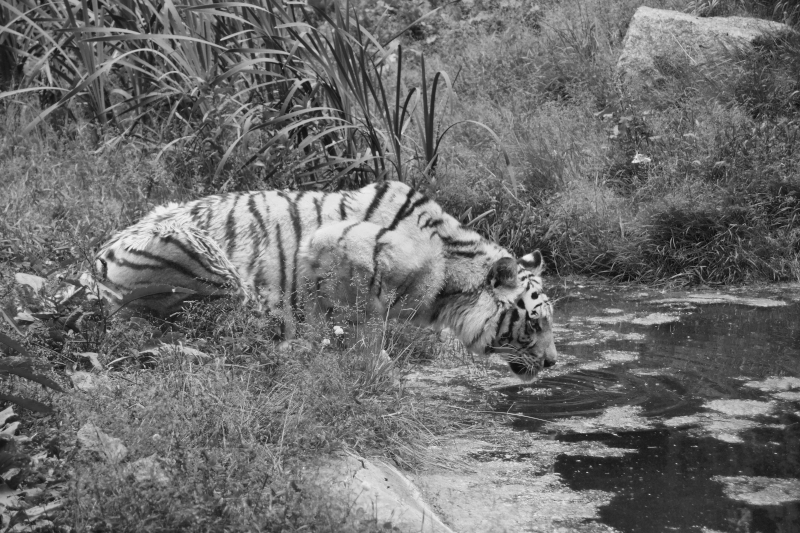 | Oliver Jahn: | Ein nettes Spiel mit den Fotos, aber das kann ich als eingefleischter Schwarz/Weiß-Fotograf dann doch nicht so stehen lassen. ;-)Wir haben hier drei Fotos von unterschiedlichen Tieren, in unterschiedlicher Umgebung, zu unterschiedlichen Zeiten und ganz unterschiedlichen Lichtverhältnissen. Außerdem sind garantiert Blendwerte und Verschlusszeiten ganz unterschiedlich, bei Foto 2 hat das Tier Frontallicht im Gesicht, Foto 3 ist beschattet. Um hier den wirklichen Effekt darzustellen kann man nur das gleiche Foto nehmen, und es einmal als Farbbild in schwarz weiß darstellen (erstes Foto) und dann beim gleichen Bild die Rot- und Gelbtöne des Tieres durch weiß ersetzen, und dann in Schwarz/Weiß darstellen. Das ganze sieht dann so aus, wie auf meinen Bildern, die ich hier mal als Vergleich einstelle. Das erste ist ein echter bunter Tiger, das zweite ist ein "umgewandelter" weißer Tiger. (08.07.2010, 19:59) | ||