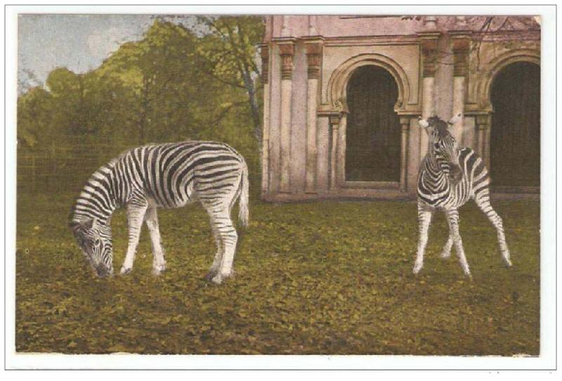 | IP66: | Die untere Karte ist ein Beleg dafür, daß die Schwellen nicht nur am Ursprungsbau, sondern auch am Anbau für Dickhäuter benutzt wurden. Wenn der schwarze Streifen unterhalb der Schwelle eine Art Schlitz bedeutet, dürfte der Einbau dieser Elemente wohl kaum dem Hochwasserschutz gedient haben. Ich halte das allerdings auch deshalb für unwahrscheinlich, als das Haus auch heute noch auf einer Art Hügel steht. Bei der Zebrakarte kann ich nicht erkennen, ob sie das Haus aus der Blickrichtung vom heutigen Südamerkahaus her oder oder den linken, heute den Nashörnern gehörenden Teil der Eingangsfassade zeigt. Der Anstrich des Gebäudes zeigt rote Kapitelle, wie sie auf der mit der Eröffnung des Hauses in Verbindung stehenden Graphik nicht in Einklang stehen. Generell passen solche Ansichtskarten besser zum Jahrhundertende als zur Eröffnungszeit des Hauses, und da war sicher ein Neuanstrich fällig geworden. Interessant fände ich, ob andere Antilopen- oder Pferdehäuser dergleichen Schwellen besaßen, etwa jenes in Hannover. (22.01.2009, 11:30) | ||