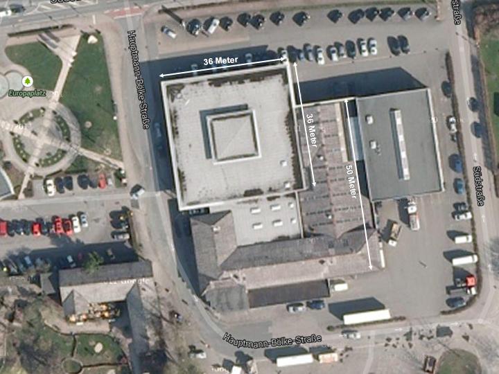 | Ulli: | Zentrale Glas-Verkaufshalle - zweigeschossig, 36 x 36 Meter (13.04.2015, 10:28) | ||
